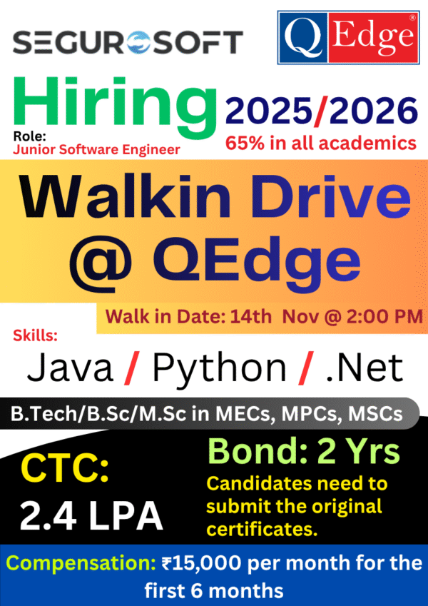 Kickstart your IT career with Seguro-Soft — a leading software company hiring Junior Software Engineers through QEdge Technologies, Hyderabad’s best institute for IT courses with placements! 📅 Date: Friday, 14th November 2025⏰ Time: 2:00 PM📍 Venue: QEdge Technologies, Hyderabad 💻… Continue Reading →