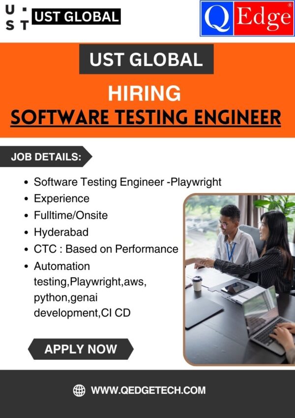 Company: UST GLOBALJob Role: Software Testing EngineerEmployment Type: Full-Time (Onsite)Location: Hyderabad Job Details: Position: Software Testing Engineer Open for Experience Education: Any Graduate CTC: Based on performance Skills Required: Automation testing, Playwright, AWS, Python, Genai development, CI CD 🌐 Website: www.qedgetech.com 📢 Eligible candidates are requested… Continue Reading →