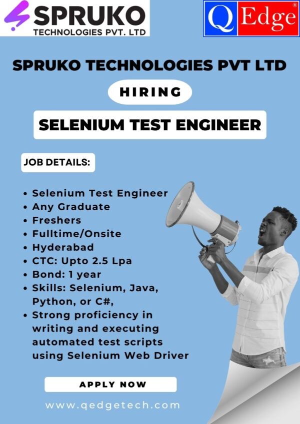 Company: Spruko technologies pvtJob Role: Selenium Test Engineer.Employment Type: Full-Time (Onsite)Location: Hyderabad Job Details: Position:Selenium Test Engineer. Open for Freshers Education: Any Graduate CTC: Upto 2.5 lpa Based on performance Bond: 1 year Skills Required: Automation testing, Selenium, Java, Python, C#, Playwright 🌐 Website: www.qedgetech.com… Continue Reading →