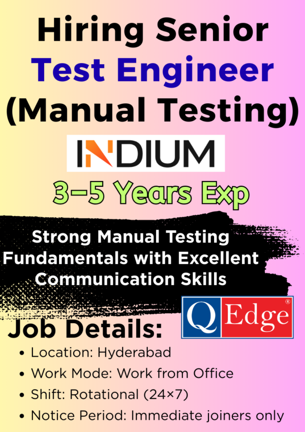 Indium Software is Hiring in Hyderabad for experienced Manual Testing professionals. 📌 Role: Senior Test Engineer – Manual Testing (OP2)📌 Experience: 3–5 Years📌 Location: Hyderabad📌 Work Mode: Work from Office📌 Shift: Rotational (24×7)📌 Notice Period: Immediate Joiners Only Required Skill Set:… Continue Reading →