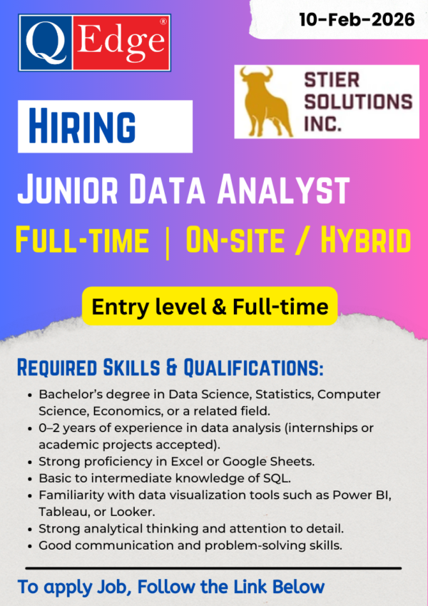 Job Title: Junior Data Analyst Job Type : Full-Time | Entry Level Work Mode: On-site / Hybrid Experience Level: 0–2 Years (Internships & Academic Projects Accepted) Key Responsibilities Collect, clean, and organize data from multiple sources Perform basic to intermediate… Continue Reading →