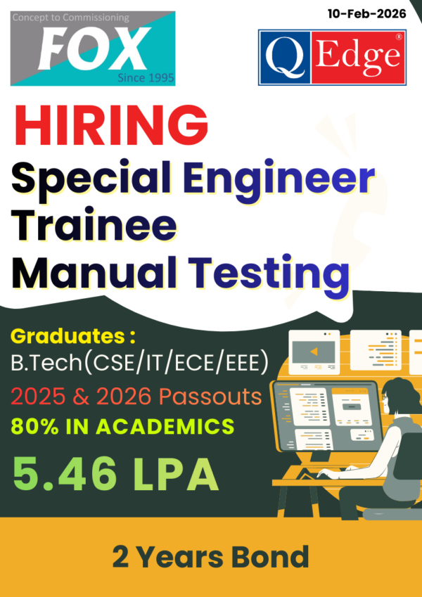 FOX India Job Type: Full-Time | Trainee Position Bond: 2 Years Service Agreement CTC: ₹ 5.46 LPA Eligibility Criteria Qualification: B.Tech (CSE / IT / ECE / EEE) Pass Out Years: 2025 & 2026 Academic Requirement: Minimum 80% throughout academics… Continue Reading →