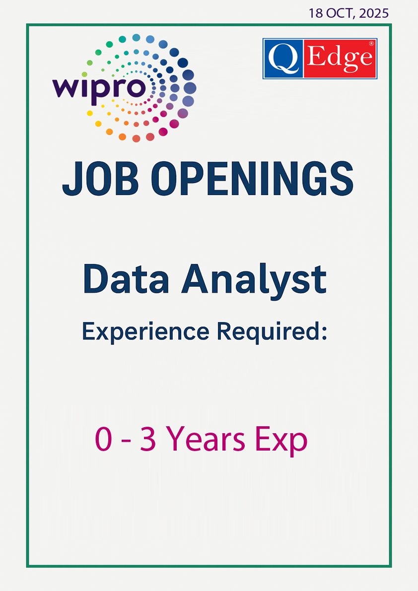Apply Here: https://careers.wipro.com/job/Data-Analyst/98287-en_US Company: WiproDesignation: Data AnalystExperience Required: 0-3 years Summary:Wipro is looking for an experienced Data Analyst with at least 0-3 years of hands-on experience in data analysis, reporting, and insights generation. The candidate will work with large datasets,… Continue Reading →