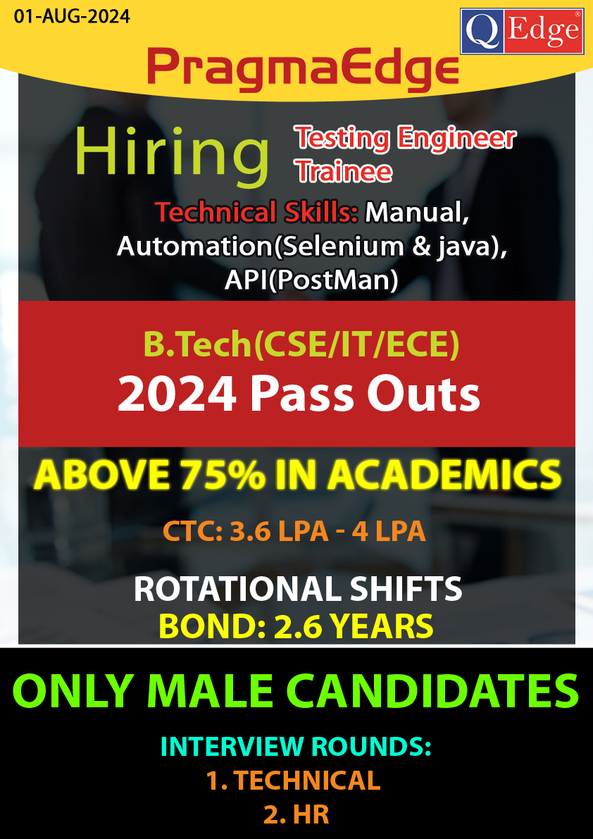 Hiring QA Testing Candidates with Having Knowledge on Manual Testing and Selenium,