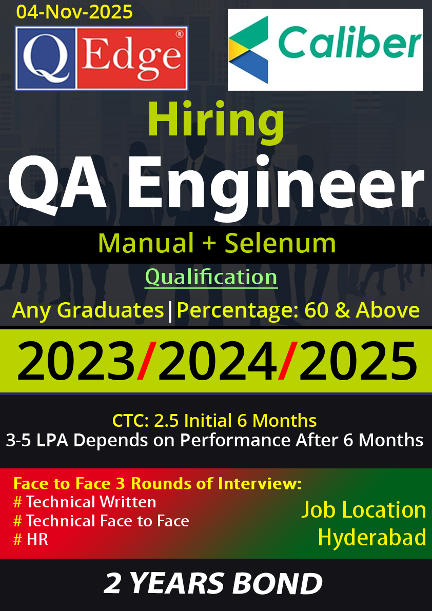 Caliber Technologies Pvt. Ltd. is hiring passionate QA Engineers with a strong foundation in Manual Testing. This is a great opportunity for candidates looking to build a long-term career in software quality assurance with growth based on performance.