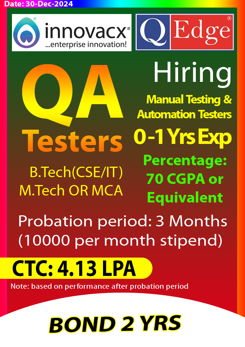 • Problem-solving, and Analytical skills, strong Knowledge on Manual Testing, Automation Testing