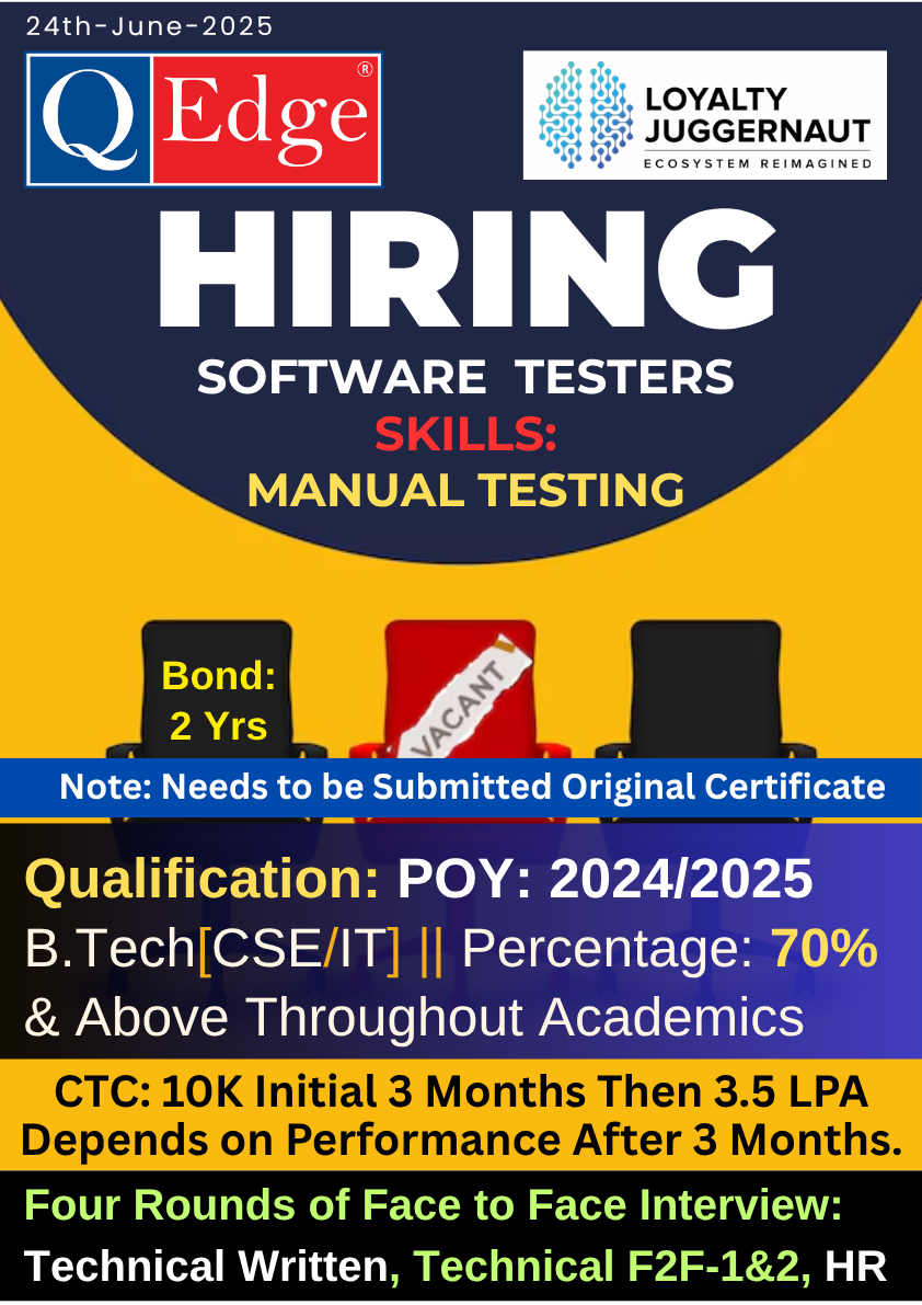 Looking to launch your career in software testing with real-world exposure? Join Loyalty Juggernaut and take the first step towards a rewarding future in QA. Apply now!